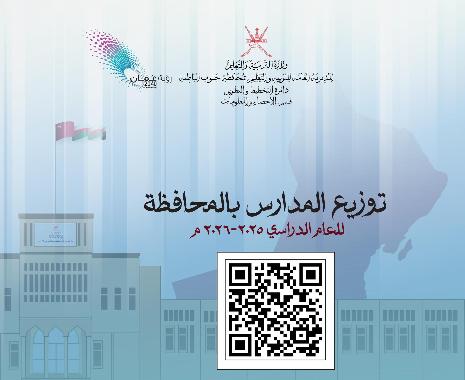 تصفح خرائط توزيع المدارس الحكومية والخاصة لمحافظة جنوب الباطنة للعام الدراسي2025-2026